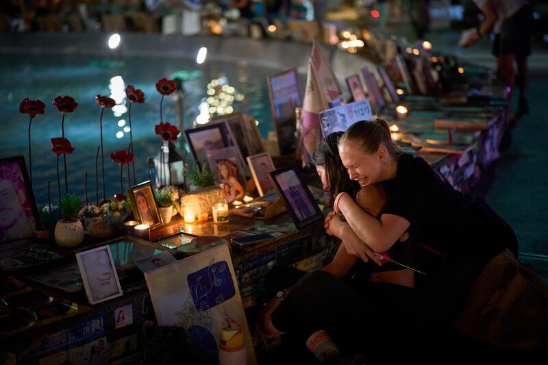 In Tel Aviv, dozens gathered at a memorial site that was set up in a city square.