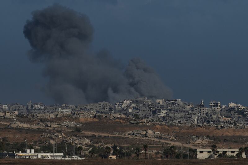 Israeli artillery and the boom of explosions in Gaza echoed across the Nova site as smoke billowed over the Strip. The Israeli military said a rocket was launched from northern Gaza in the morning, but no damage or injuries were reported.
