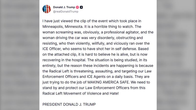 In a social media post, U.S. President Donald Trump made similar accusations against the woman and defended ICE’s work.
