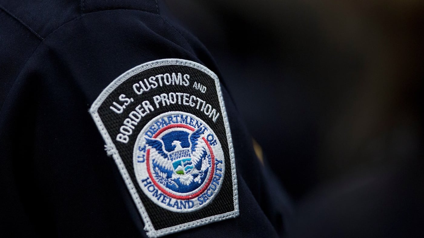 A customs agent wears a patch for the U.S. Customs and Border Protection agency, Oct. 27, 2017, at John F. Kennedy International Airport in New York. (AP Photo/Mark Lennihan, file)