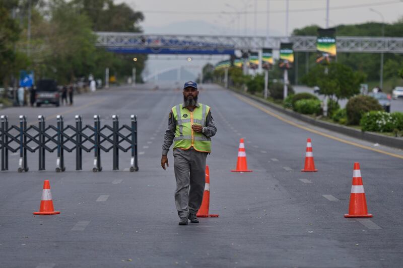 A police officer stands to divert traffic on a road barricaded by authorities due to security arrangements for possible second round of talks between the U.S. and Iran, in Islamabad, Pakistan, Friday, April 24, 2026. (AP Photo/M.A. Sheikh) A police officer stands to divert traffic on a road barricaded by authorities due to security arrangements for possible second round of talks between the U.S. and Iran, in Islamabad, Pakistan, Friday, April 24, 2026. (AP Photo/M.A. Sheikh)