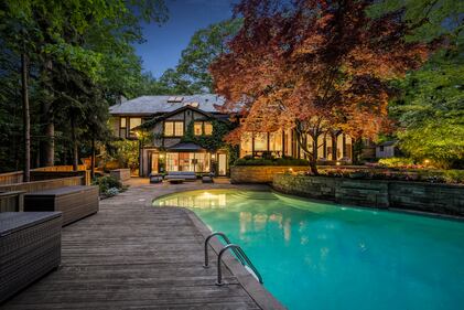 In Etobicoke, 25 North Drive is listed at $14,995,000. Agent Cailey Heaps describes it as “timeless, private and deeply rooted in nature.” (SilverhouseHD photography)