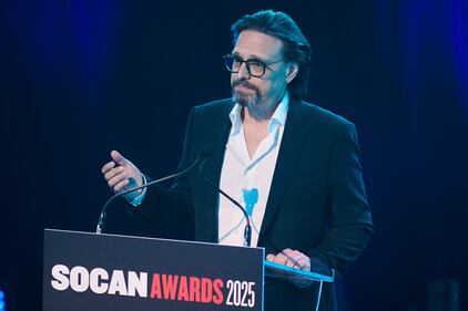 SOCAN president and chair Marc Ouellette speaks at the 2025 SOCAN awards in Toronto, on Monday, Sept. 29, 2025. THE CANADIAN PRESS/Sammy Kogan
