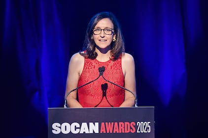 SOCAN CEO Jennifer Brown speaks at the 2025 SOCAN awards in Toronto, on Monday, Sept. 29, 2025. THE CANADIAN PRESS/Sammy Kogan