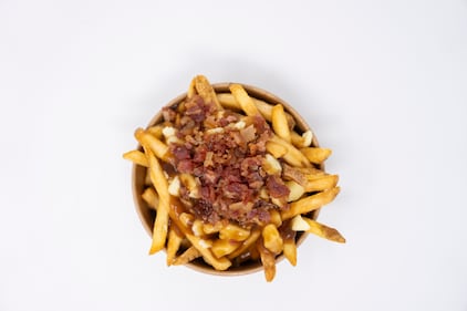 Maple bacon poutine, located at Stands 109, 123, 128, 133, 209, 215, 220, 228, 233, 514, 523, 529, and 533: P.E.I cut fries | cheddar cheese curds | candied maple bacon | poutine gravy
