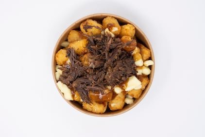 Toronto-style smoked meat poutine, located at the Heinz Club: tater tots | curds | pulled pastrami | poutine gravy