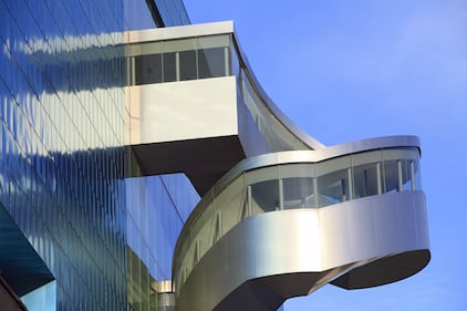 The Art Gallery of Ontario staircase, designed by Frank Gehry, as seen from the outside of the building from Grange Park in Toronto, Ont., in 2013. (John Dorosiewicz/flickr via Getty Images)