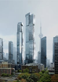 The two towers will be 73 and 84 storeys tall, the highest of any of Gehry’s residential projects. This is an artist’s illustration of the towers. (Forma / Great Gulf)