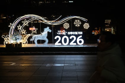 A person walks by illuminated decorations on New Year's Eve in Seoul, South Korea, Wednesday, Dec. 31, 2025. (AP Photo/Lee Jin-man)