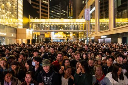 People attend the New Year countdown event to celebrate the start of 2026 in the Central district of Hong Kong, on Wednesday, Dec. 31, 2025. (AP Photo/Chan Long Hei)
