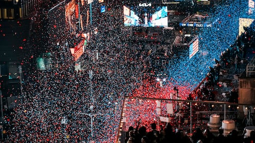 AP Top Photos of the Month December 2025 FILE - Confetti falls over attendees in Times Square during New Year's Eve celebration, Thursday, Jan. 1, 2026, in New York. (AP Photo/Eduardo Munoz Alvarez, File)