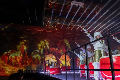Drummers ring in the new year at the Juyongguan Great Wall on the outskirts of Beijing, China, early Thursday, Jan. 1, 2026. (AP Photo/Ng Han Guan)