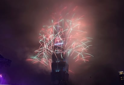 Fireworks explode from the Taipei 101 building during the New Year's celebrations in Taipei, Taiwan, Thursday, Jan. 1, 2026. (AP Photo/Chiang Ying-ying)