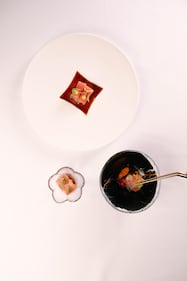 “(This course) features different cuts of bluefin tuna (akami, chutoro, and otoro, all of which have varying fat contents) which guests are invited to enjoy in a specific order to display the change in flavour over various cuts of the same type of protein,” Donison said in an email.