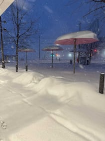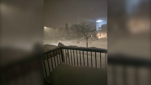 A snow-covered balcony in North York, Monday, Jan. 26, 2026.