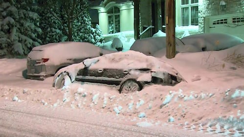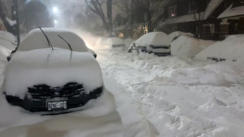 Toronto snow Snow piled on cars on Walmer Rd. in Toronto, Sunday, Jan. 25, 2026. (Elaine Gold)