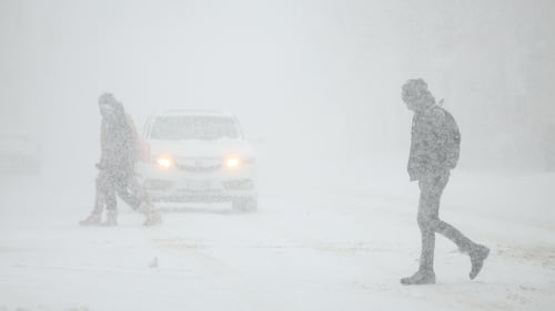 People walk through snow in downtown Toronto as a winter storm moves through the region with Environment Canada warning of peak snowfall rates of 5 to 8 cm per hour, Sunday, January 25, 2026.THE CANADIAN PRESS/Cole Burston
