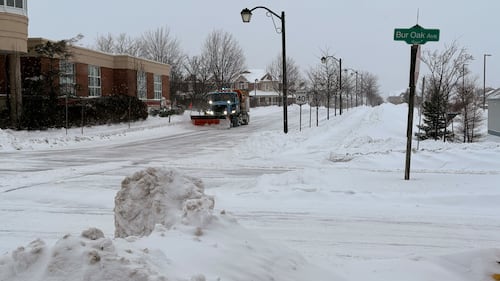 Snow is removed from driveways at Woodbine and Danforth in Toronto, Jan. 26, 2026. (Steve Russell/Toronto Star via Getty Images)