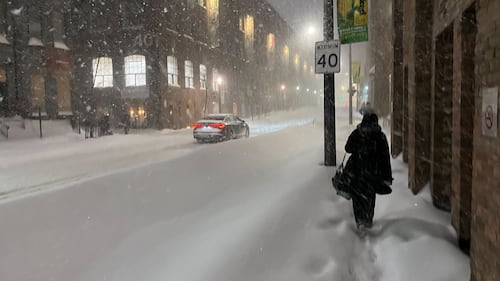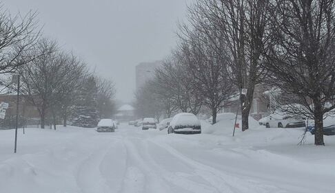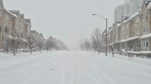 A street is seen filled with snow amid a winter storm in Toronto, Sun., Jan. 25, 2026.