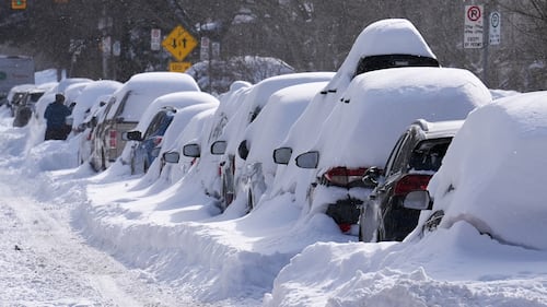 Parked cars buried in snow are seen after a heavy snowfall in Toronto, Jan. 26, 2026. (Mert Alper Dervis/Anadolu via Getty Images)