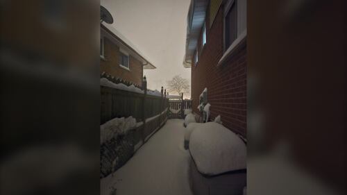Photo of a snow-covered driveway in Mississauga, Ont., Monday, Jan. 26, 2026. (Giriah)