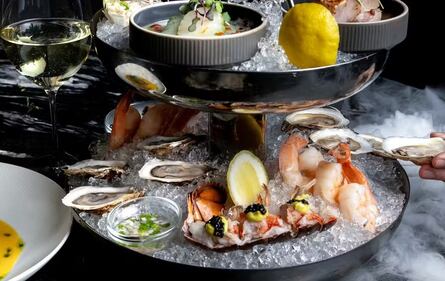 Gotham Steakhouse and Bar, Vancouver, B.C. This steakhouse primarily serves prime grade beef from Canada, though diners can opt for a seafood tower complete with oysters, prawns, and the option to add locally sourced sturgeon caviar.