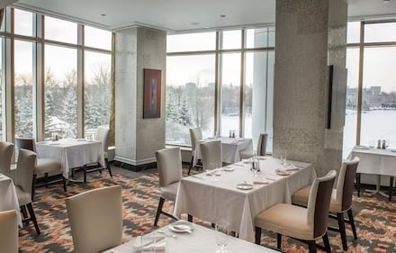 Arôme, Gatineau, Que. Diners can feast on surf and turf specialties while taking in a picturesque view of a lake.
