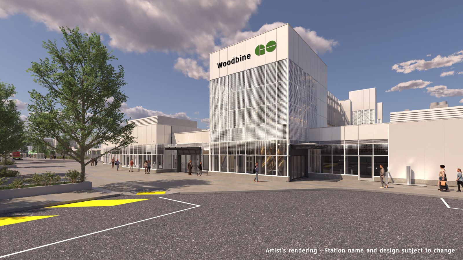 When complete, Woodbine Station will be accessible and will include dedicated parking, a passenger pick-up and drop-off area, a bus loop and a passenger waiting area.