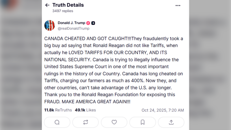 Trump reacted sharply to the ads in a social media post late Thursday night, accusing Canada of “fraudulently” using the clips, which the president described as “fake.”