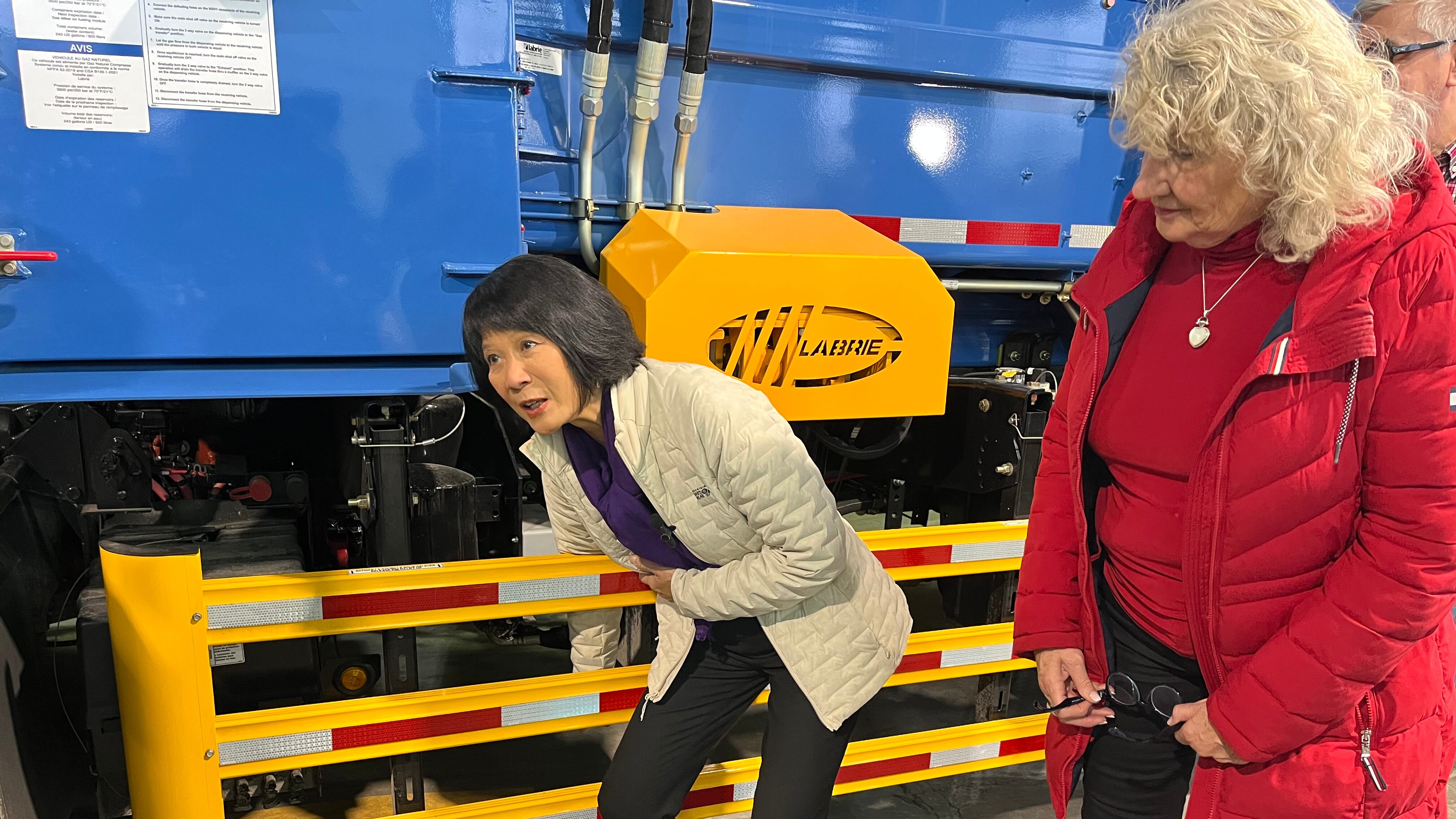 Standing in front of a vehicle outfitted with side guards Wednesday, Chow recalled a promise she made to the husband and child of Jenna Morrison – a 38-year-old yoga instructor who was fatally struck by a transport truck while cycling back in 2011 – back when she was an MP.